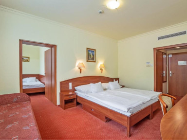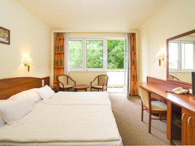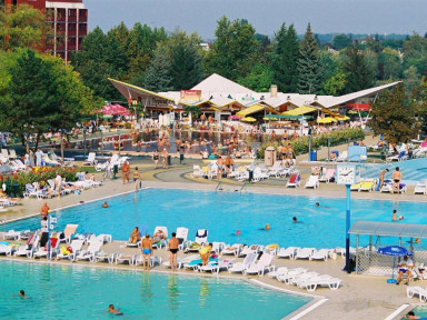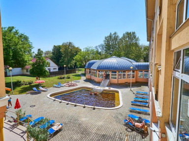 Спа-отель Hungarospa со своими собственными лечебными ваннами расположен в тихом месте курорта Хайдусобосло, рядом с одним из самых больших водолечебных комплексов Европы с 13 открытыми бассейнами.